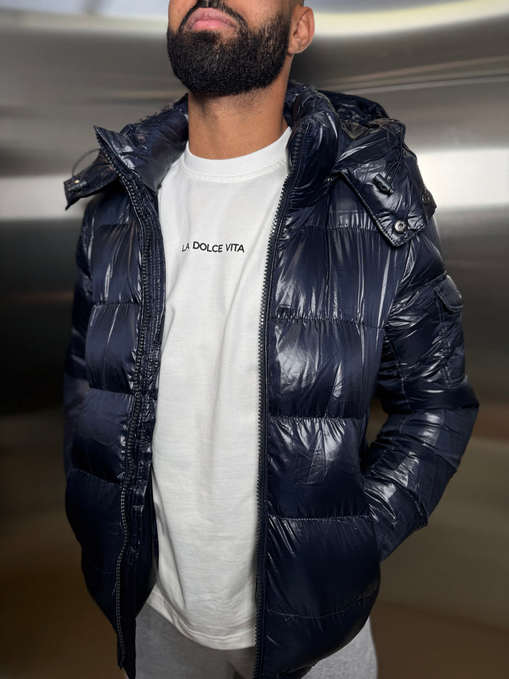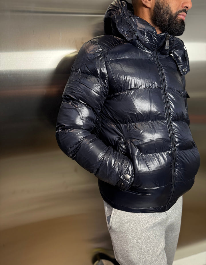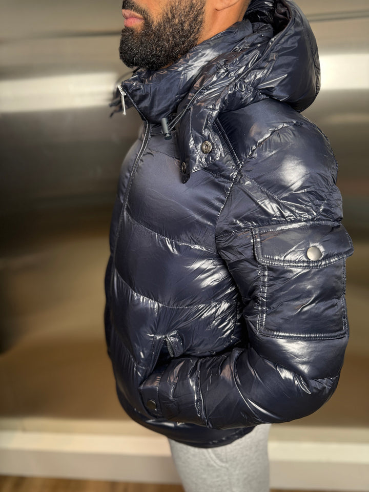 Doudoune brillante bleu marine