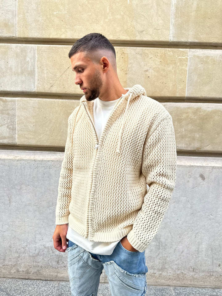 Gilet en maille ajourée beige